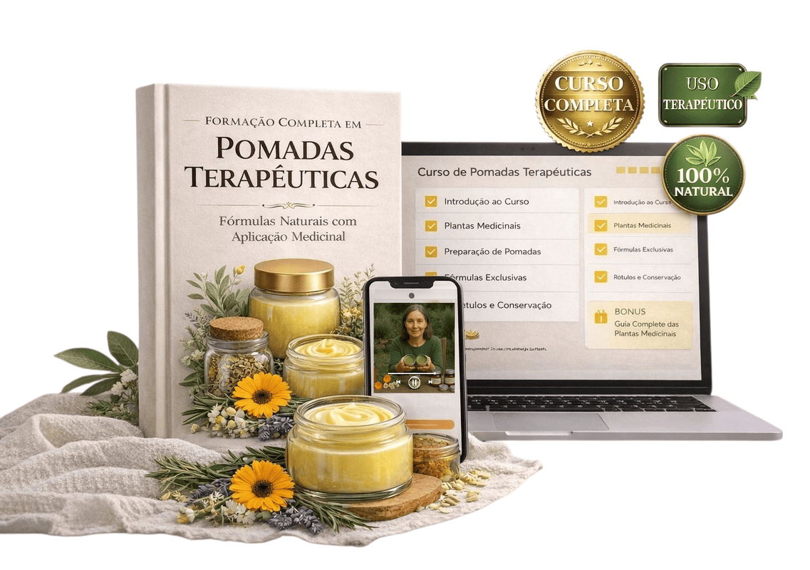 Descubra o verdadeiro poder curativo das plantas e aprenda a transformar ingredientes naturais em pomadas terapêuticas eficazes, seguras e de alta qualidade.